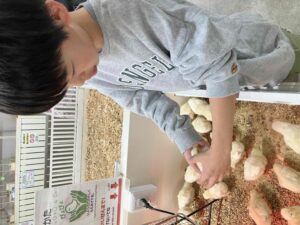 長男はひよこにはまり、最後のほうは、ひよこをなでて寝かしつけてました。笑